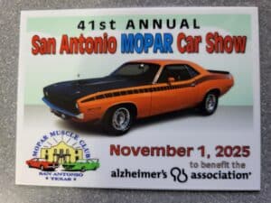 Come join us at Biff Buzby’s Burgers located at 12702 Toepperwein Rd, Live Oak, TX. We will be meeting at 6 p.m. Cruise season is now in full-bloom. So let’s get those fabulous Mopars out there. Please come out to support Biff’s and the club with both classic and modern Mopars.